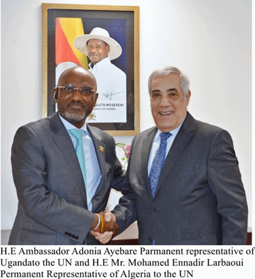 The Permanent Representative of the Republic of Algeria to the United Nations, H.EMr. Mohamed Ennadir Larbaoui, paid a courtesy call on the Permanent Representative of Uganda to the UN , H.E Ambassador Adonia Ayebare.